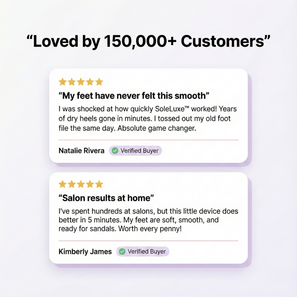 SoleLuxe™ uses a gentle micro-mineral roller to buff away dead skin and calluses in seconds — all with zero pain or effort. Just glide it over your feet, and watch the smoothness appear.