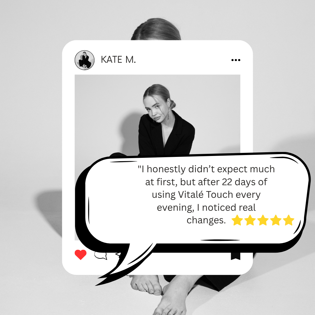 No worries! Vitalé Touch offers a 30-day money-back guarantee. Try it risk-free and fall in love with your skin again.